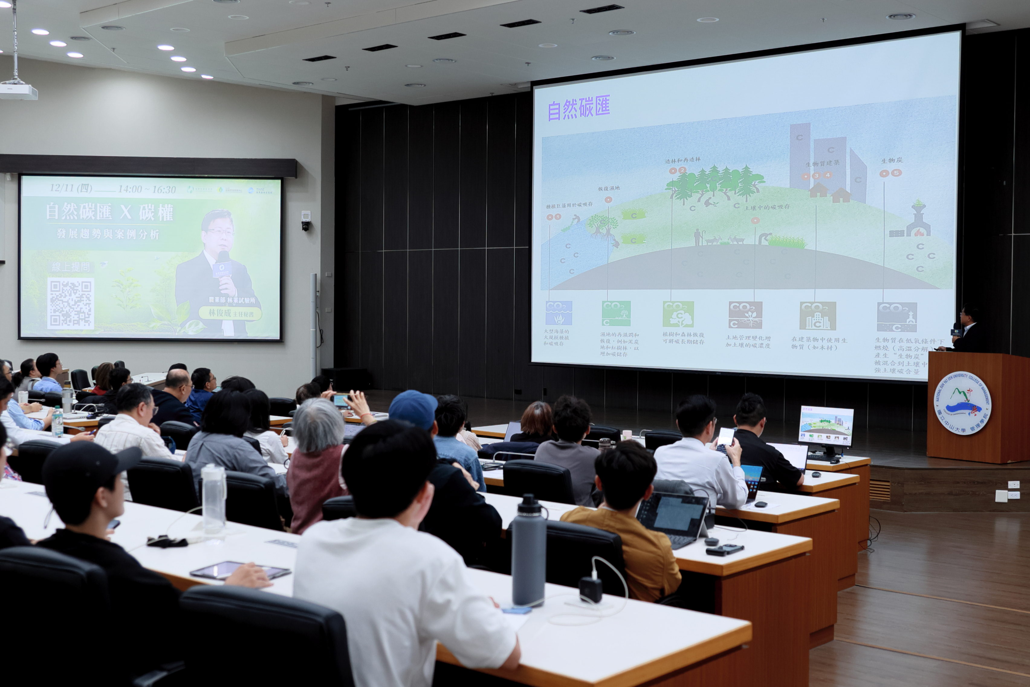 本次講座在熱烈討論中圓滿落幕,讓與會者完整掌握自然碳匯在國內外發展和碳權交易市場趨勢。中山大學碳權研究與服務中心表示,未來將持續與政府機關、研究單位與企業社群合作,推動自然碳匯研究、能力培訓與實務應用,協助臺灣在邁向 2050 淨零之路上,強化自然碳匯在國家減碳策略中的重要地位。